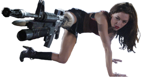 Machine Gun Leg: Cherry's leg was replaced with a machine gun and she can activate it remotely (perhaps using the muscles in her thigh as a trigger mechanism. She can fire unlimited rounds of bullets and even explosives from it.