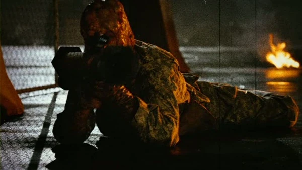 A zombie uses an M136 AT4 to try and kill Cherry.