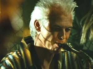 He is seen a the Military Base in the quarantine section with other survivors. He is playing with his saxaphone. He then helps Wray and Abby escape.
